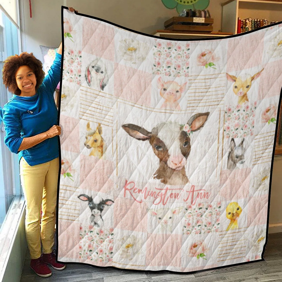 Wrap yourself or your loved ones in warmth and comfort with our Personalized Quilt with Farm Animals. This beautifully crafted bedspread with cow set is not only soft and durable but also customizable with a name of your choice, making it a perfect gift for both kids and adults alike.