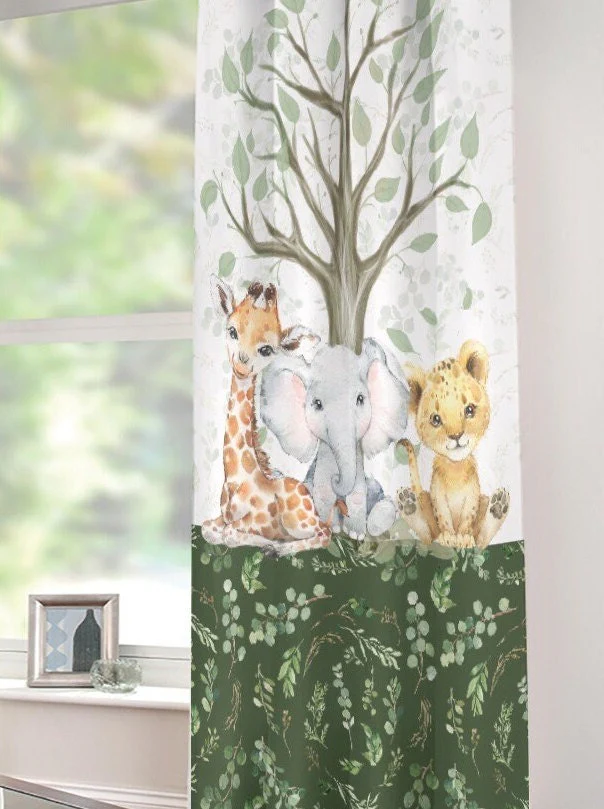 Greenery with Safari Animals and a Tree Blackout Curtains