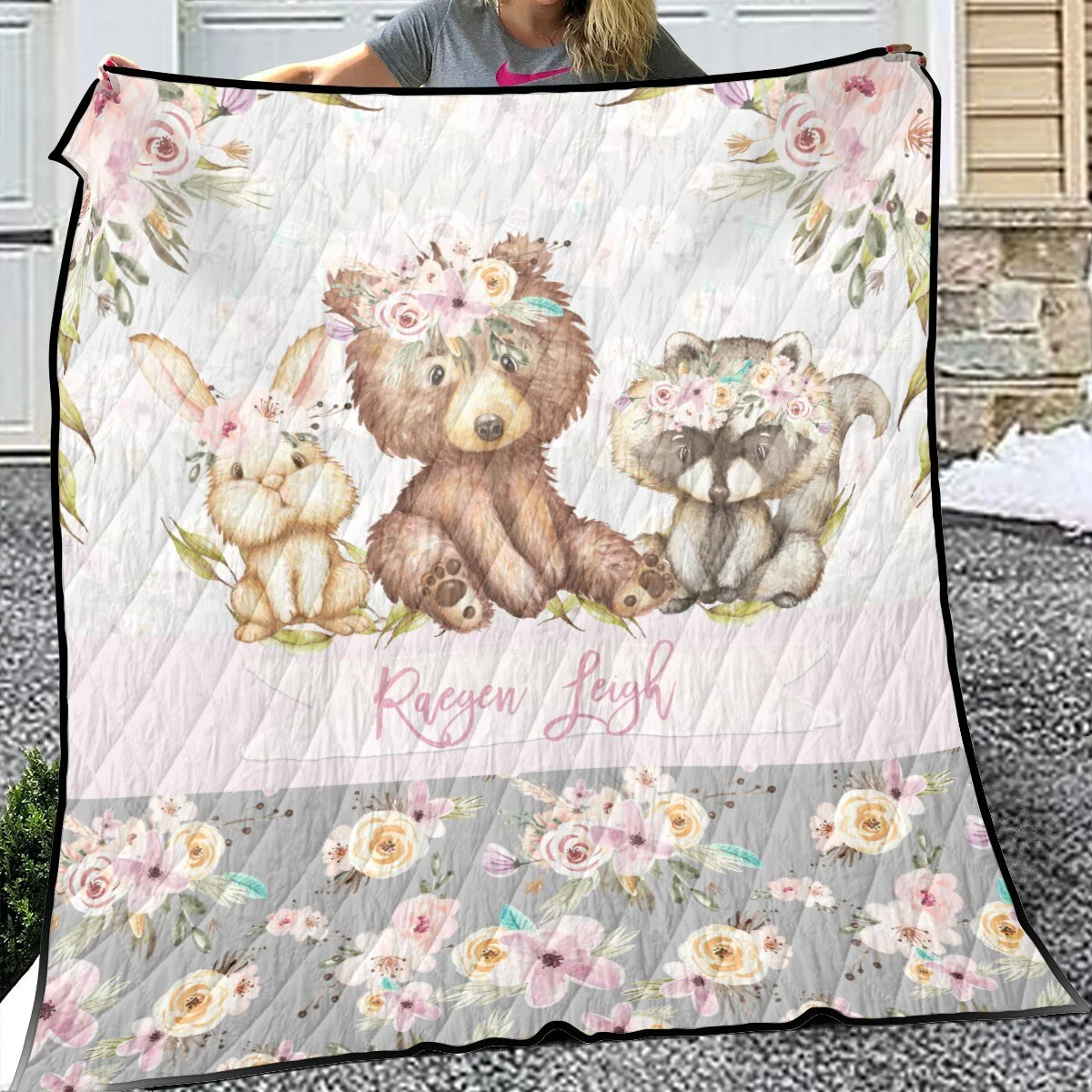 Wrap yourself or your loved ones in warmth and comfort with our Woodland Personalized Quilt for Girl. This beautifully crafted bedspread set with animals is not only soft and durable but also customizable with a name of your choice, making it a perfect gift for both kids and adults alike.