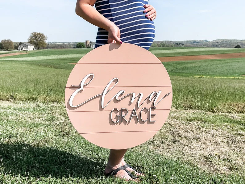 Shiplap Round Nursery Name Sign